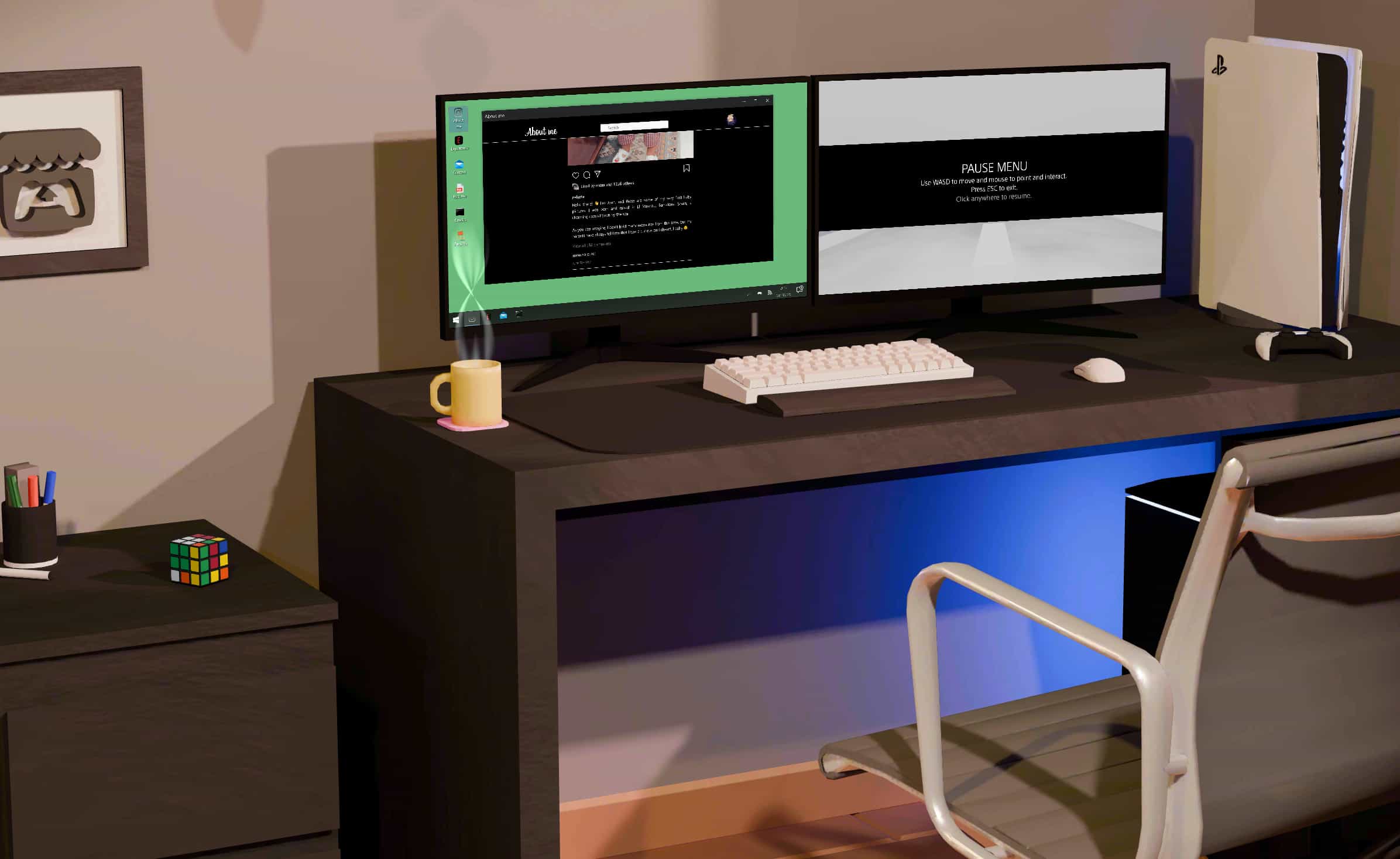 In the popular “chill room genre” of 3d portfolio sites. Has an arcade with working classic games, a full Rubik’s cube and I love the personal touches like the fake instagram feed liked by his mom.